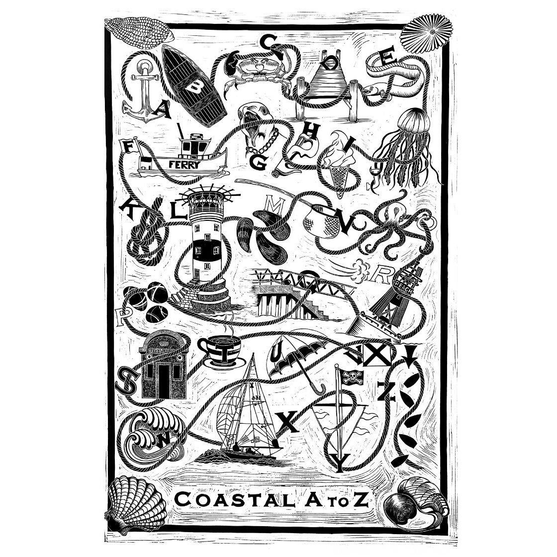 Often an idea will generate in her head because of a photo she has taken or something she has seen. She will sketch out ideas either in a sketch book or on her iPad and then translate them to either lino or a wood block, depending on how the drawing looks.