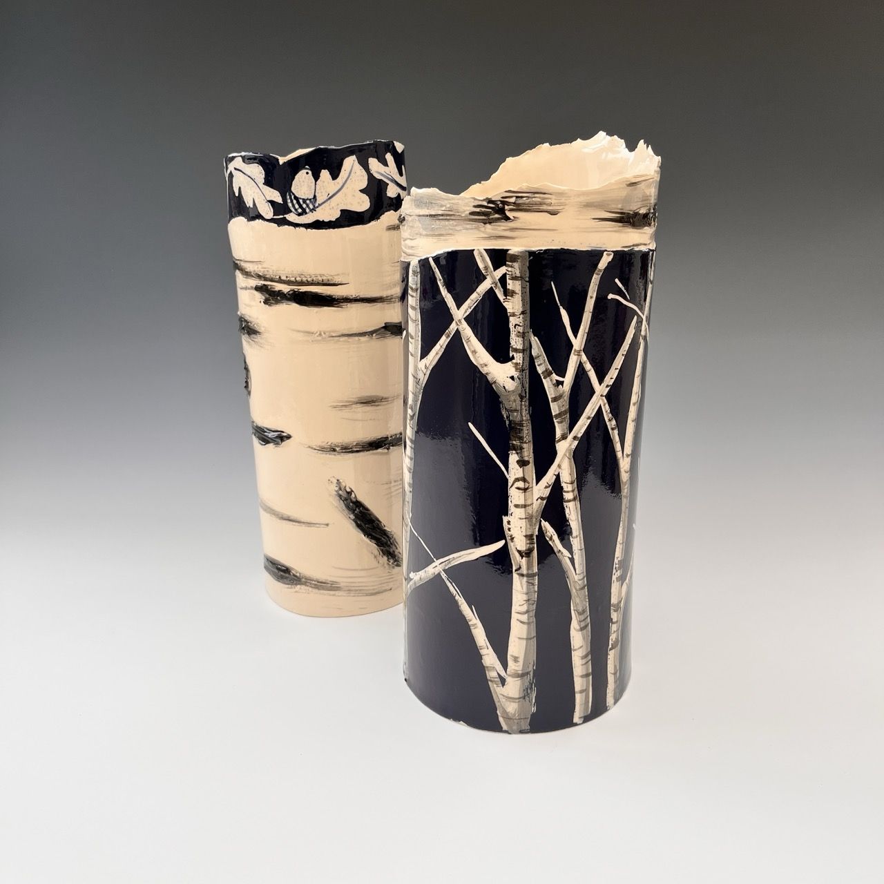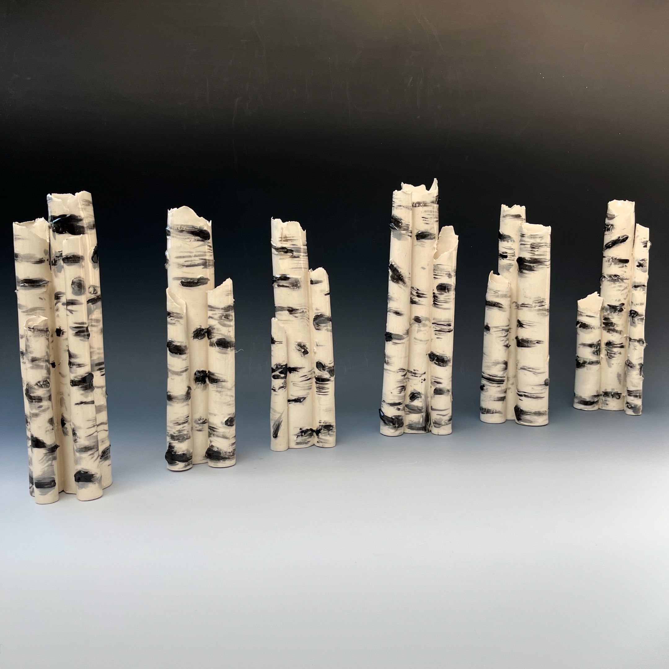 Elaine’s practice is rooted in a deep, observational dialogue with the English landscape, specifically the woodlands of Dorset and the Cornish coastline. Drawing on her foundational training at Camberwell School of Art, she creates hand-built sculptural and functional stoneware and earthenware that prioritise texture, balance, and complexity. Using white stoneware clay, she employs altered slab techniques to replicate the organic, irregular patterns found in silver birch bark, hedgerows, forest floors, parkland, and, more recently, geological formations.