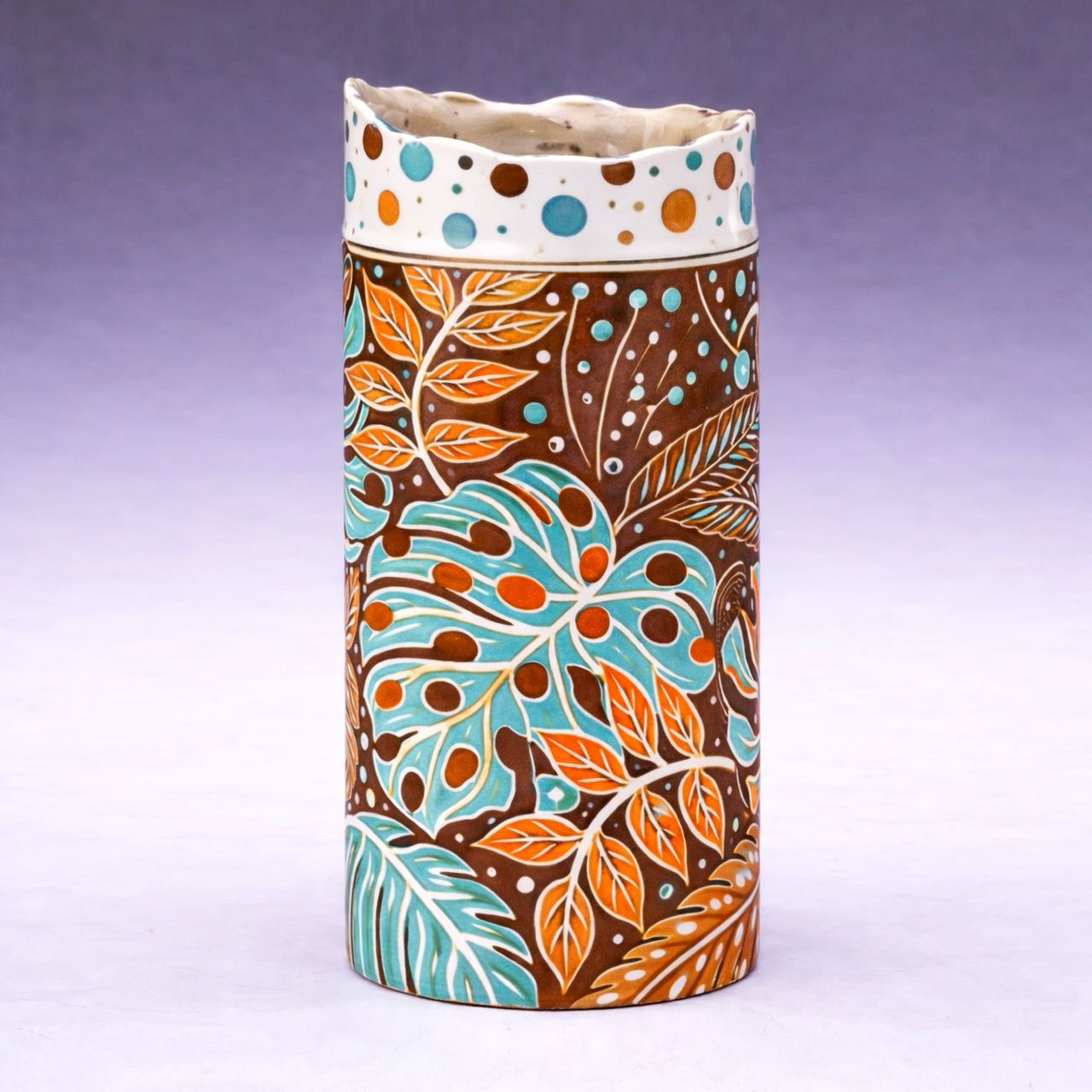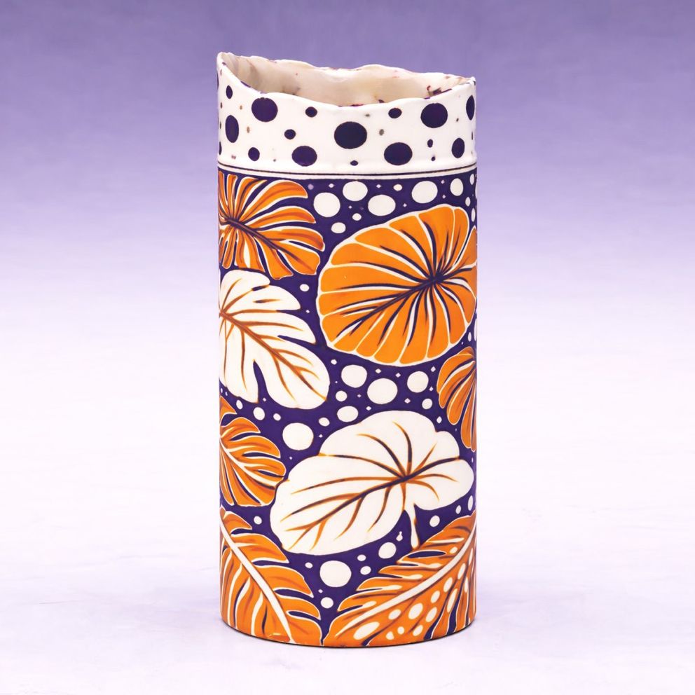 Elaine’s work contributes to contemporary craft by bridging the gap between traditional hand-building heritage and modern botanical abstraction. By integrating hand-painted oxides and slips with tactile, structural experimentation, she challenges the boundary between decorative surface and form. Her most recent practice fosters the development of contemporary design by demonstrating how ancient geological materials can be translated into permanent, sophisticated vessels that capture fleeting natural phenomena with added botanical influences.