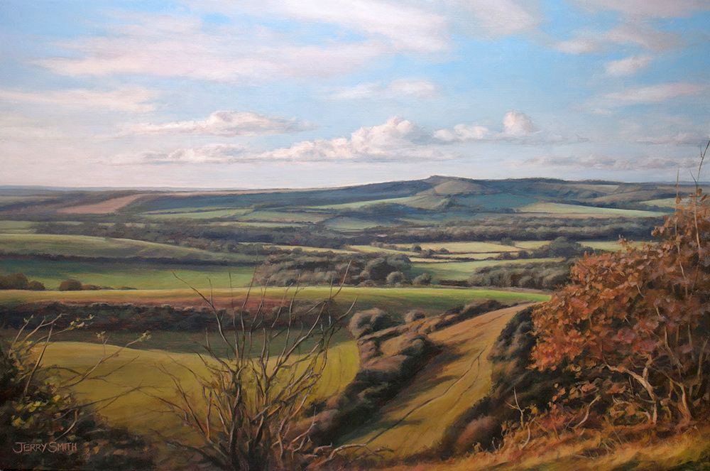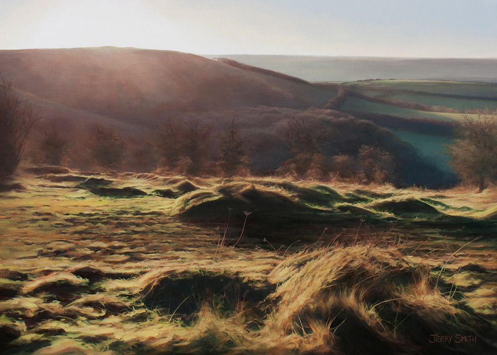 Jerry paints in a vivid representational style driven by a passion for detail which has always been evident in his work. He is often drawn to the subtle light and shadows cast across the rural landscape, especially on sunny winter days. The local Meon Valley is a constant source of inspiration and Jerry continues to paint, sketch and photograph the landscape across the changing seasons.