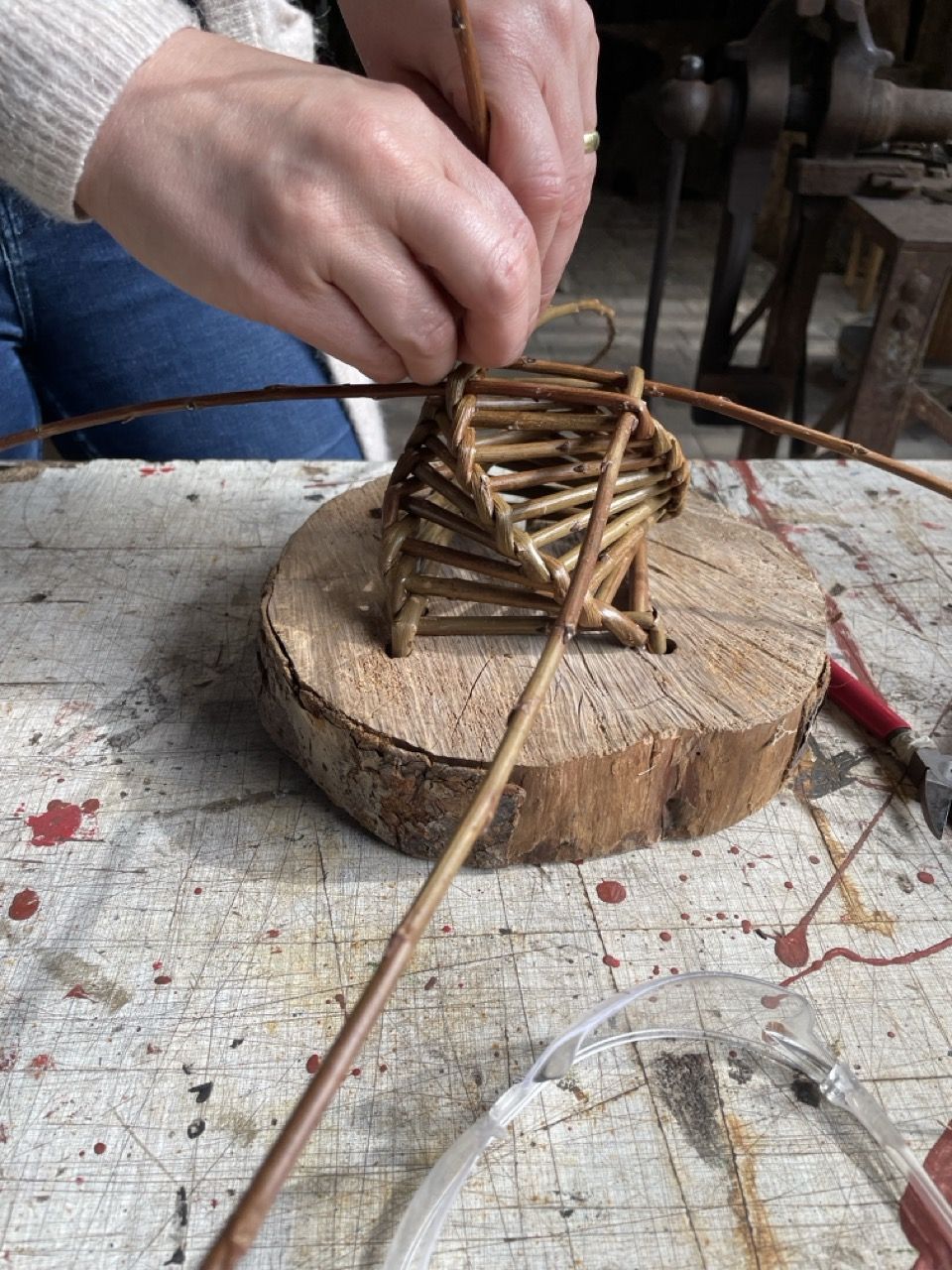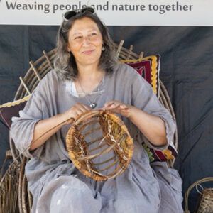 No basket has ever been made by a machine…. where there are baskets there are people and where there are people there have always been baskets. Louise makes and teaches under the name Rough Around the Hedges. Her basketmaking activities follow the seasons and varied landscape of Hampshire in the South Downs National Park, UK. Winter lends itself to carving, forming and setting frames from coppice woods and repair work, while Spring completes the annual willow harvest and prompts weaving of nests, feeders and plant supports. Summer provides plenty of festival and course opportunities to share basketry skills and techniques with others, while Autumn invites hedgerow and garden harvests, foraging of weaving fibres and gift giving.