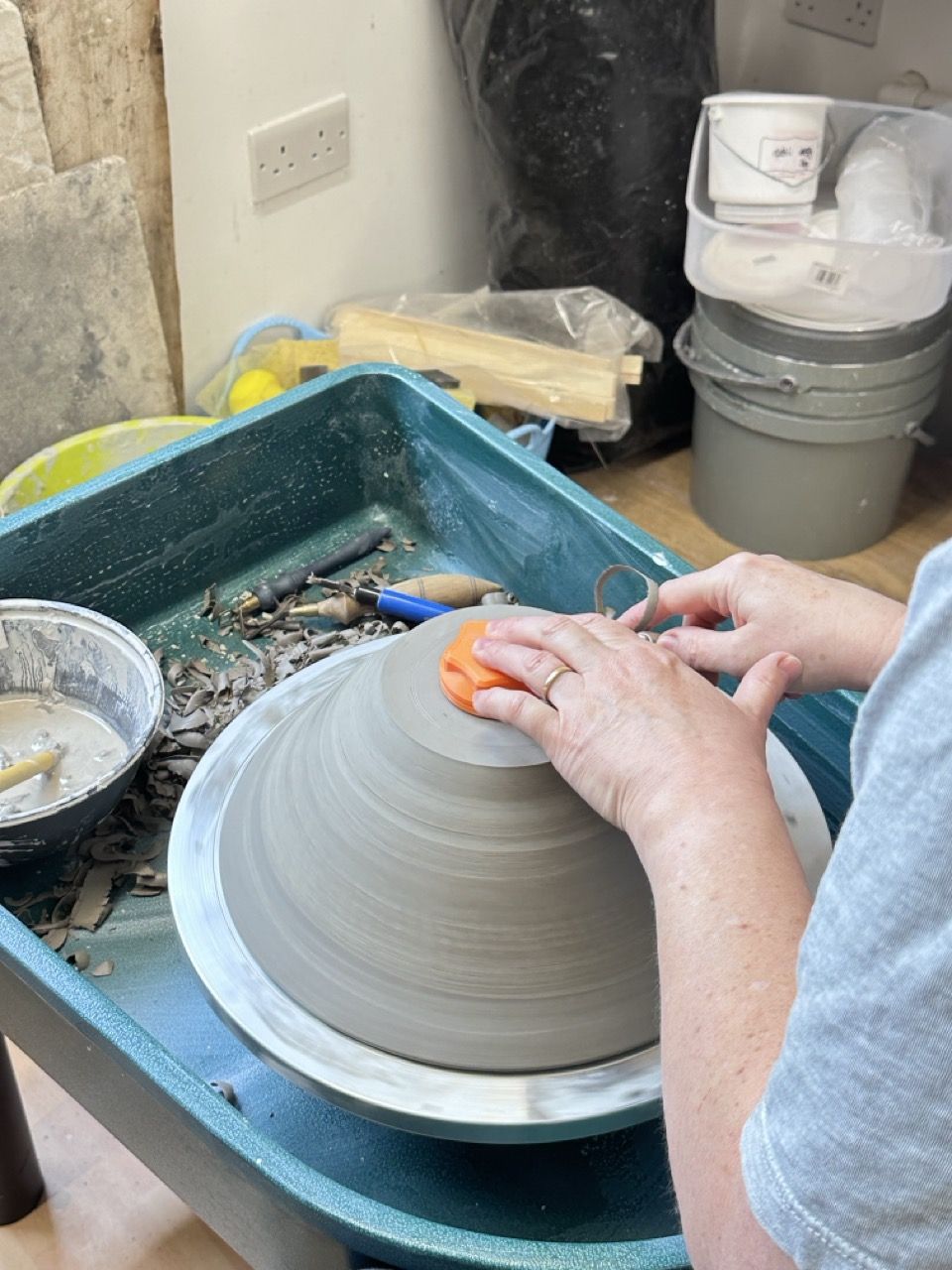 I will take you through the basics of throwing on the wheel and you will have plenty of time to practise. Up to two of your pots will be fired and glazed at a later date ready for your collection.